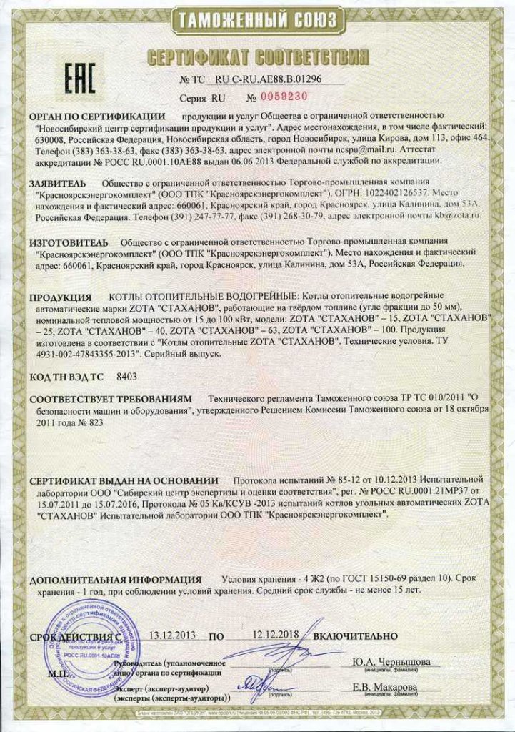 Инструкции, чертежи, документы - Отопительный котел Zota Стаханов 15