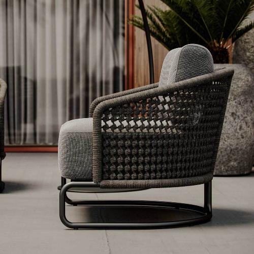- Плетение спинки и подлокотников выполнено из прочной акриловой веревки (роуп).
