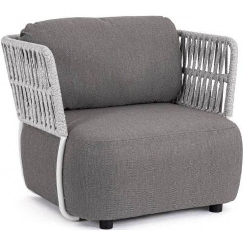 Веревочное плетение из олефиновой ткани (100% полипропилен), благодаря которому кресло выглядит стильно в любом помещении или на открытой площадке.