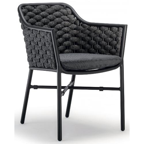 - Спинка кресла выполнена из плетения веревки (роуп). Материал - олефин темно-серого (CHN45-03) цвета. Как и другие синтетические материалы, роуп рассчитан на любые погодные условия, и его можно оставлять на улице круглый год.
