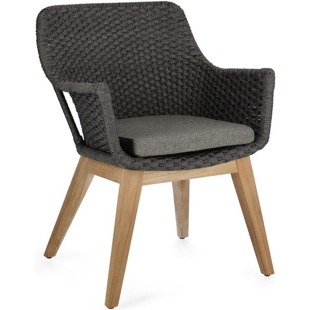 Спинка и подлокотники оплетены канатами из олефина (100% полипропилен).