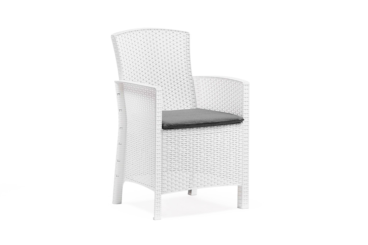 Комфортное уличное кресло с высокой прямоугольной спинкой и подлокотниками, будет отлично смотреться во всех открытых пространствах: