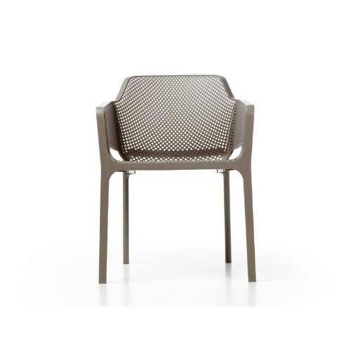 Net – это моноблочная модель из стеклопластика с перфорированным рисунком, который равномерно распределен по трехмерной поверхности сиденья. Материалы не подвержены воздействию УФ-излучения, благодаря этому кресло долго сохраняет свой первоначальный вид и не выцветает на солнце. Кресло оснащено нескользящими накладками на ножках, поэтому его можно разместить возле бассейна, а также оно может штабелироваться, что облегчает его хранение.