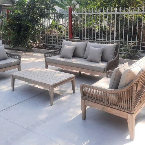 Изготовленная из массива акации, полученного экологически безопасным способом, в сочетании с ручным плетением из роупа, мебель идеально подходит для придания нотки тренда и индивидуальности любому пространству, как в помещении, так и на открытом воздухе.