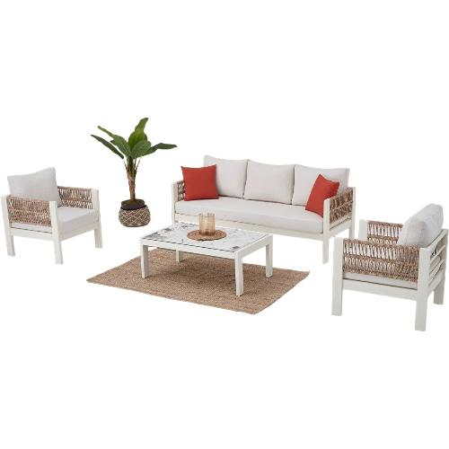 - Каркас мебели выполнен из алюминия с электростатическим защитным порошковым покрытием, которое предотвращает коррозию и делает этот материал подходящим для наружного применения.