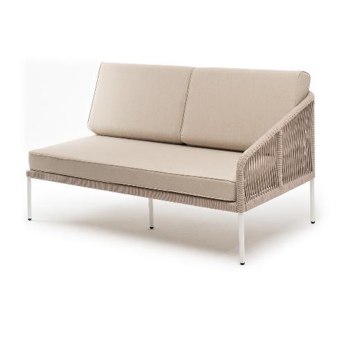 Левый модуль 4SiS Канны плетеный из роупа, каркас алюминий белый муар, роуп бежевый круглый, ткань бежевая 15052