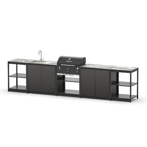 Металлическая мангальная зона из пяти модулей с мойкой, столешницей и грилем на углях.Размер мойки: