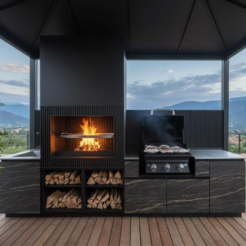 Отдельно хочу отметить, что рассматривали возможность установки именно открытой топки , хотелось камин в зону барбекю. И у нас это получилось, стало очень уютно и тепло в зимний период времени у меня на террасе.