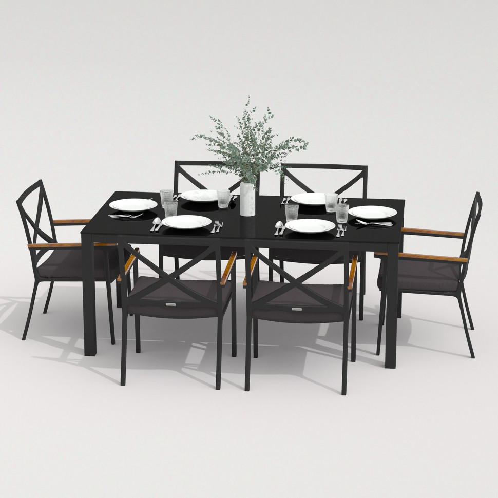 Обеденная группа CANA FESTA каркас карбон / стол стекло 180 / ткань антрацит