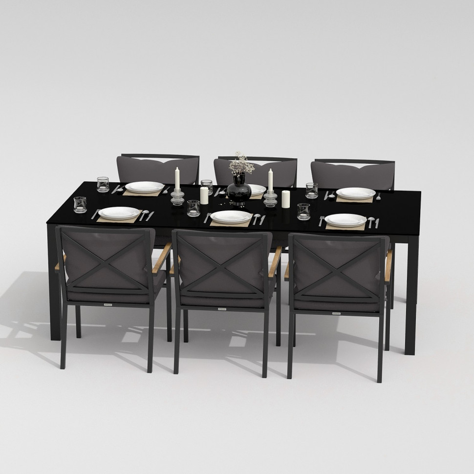 Обеденная группа CANA FESTA plus каркас карбон / стол стекло 220 / ткань антрацит