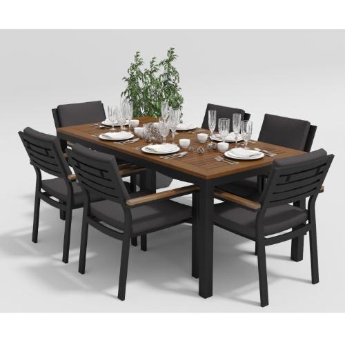 Цвет: каркас темно-серый карбон/подушки антрацит/столешница тик
