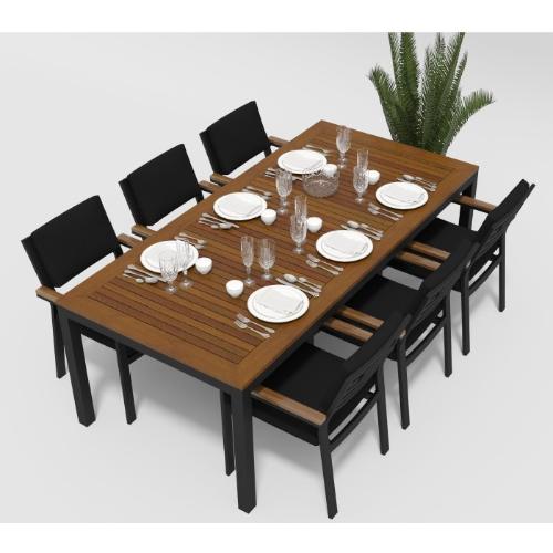 Цвет: каркас темно-серый карбон/ подушки черные/ столешница тик