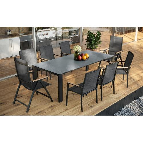 Обеденный комплект Brafritid Lyon-Andy 220A+6N2R антрацит/серый, алюминий/спеченный камень/тик