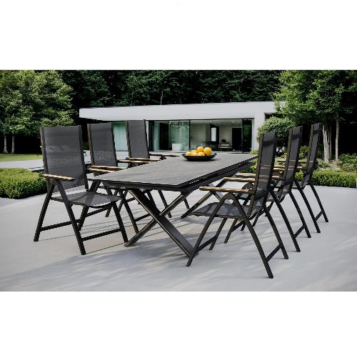 Обеденный комплект Brafritid Timra-Andy 240+6R антрацит/серый, алюминий/спеченный камень/тик