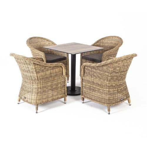 "Каффе" обеденная группа на 4 персоны, стулья соломенные