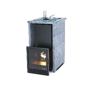 Вы можете выбрать печь в полном или трёхстороннем кожухе. Полноценный кожух специально разработан для банной печи, которую топят прямо из парной. Кожух выполняется в трёх вариантах камня: стандартный из талькохлорита, под заказ – пироксенит или змеевик.