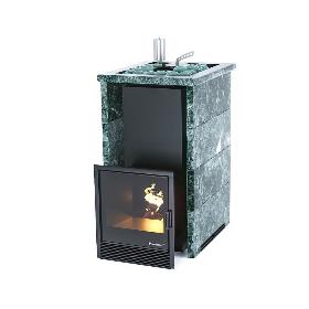Банная печь ИзиСтим Сочи в трёхстороннем кожухе с открытым верхом из змеевика