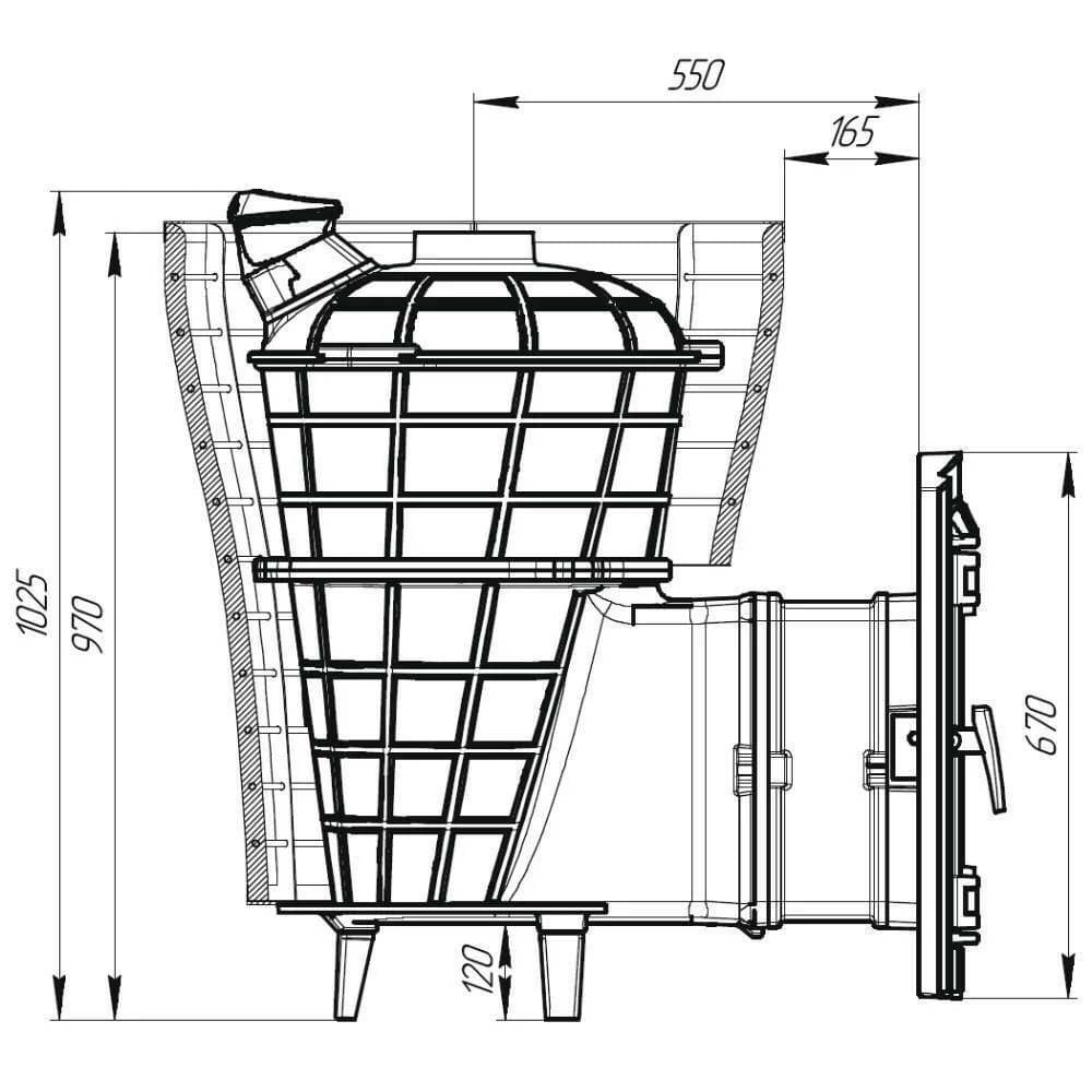 • Закрытая каменка, расположенная внутри топки позволяет провести нагрев камней до очень высоких температур. Камни находятся внутри корпуса каменки и нагреваются непосредственно пламенем равномерно со всех сторон.
