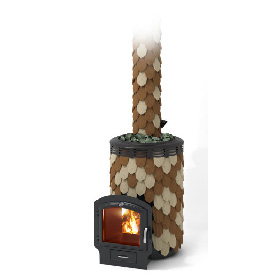 Дровяная банная печь «Панголина» – первая керамико-металлическая банная печь TMF. Это стальная банная печь, облицованная снаружи изразцами из натуральной терракотовой керамики.