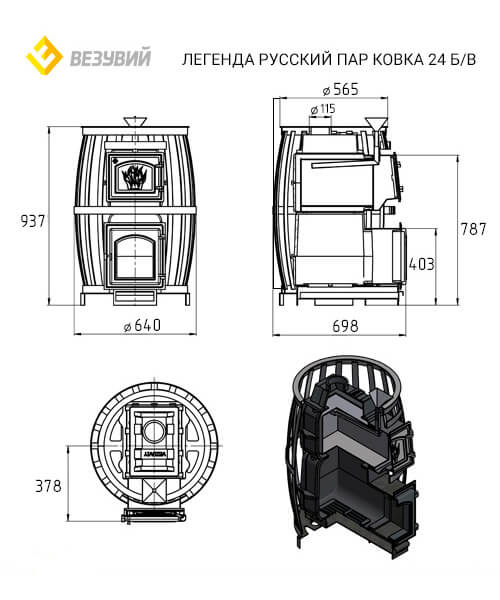Инструкции, чертежи, документы - Банная печь Везувий Легенда Русский пар (Сандуны) Ковка 24 (270) б/в