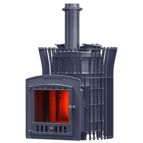 Чугунная банная печь GFS Авангард ЗК 25 (П2) Ураган в сетке Тюльпан