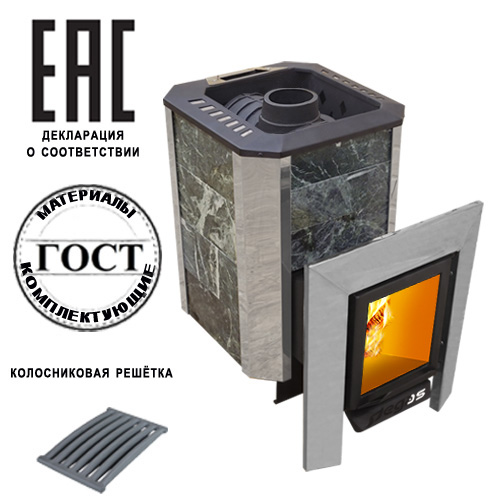 Печь Берёзка Пегас 16 NEXT ДТ4 со стеклом в камне змеевик ЗК