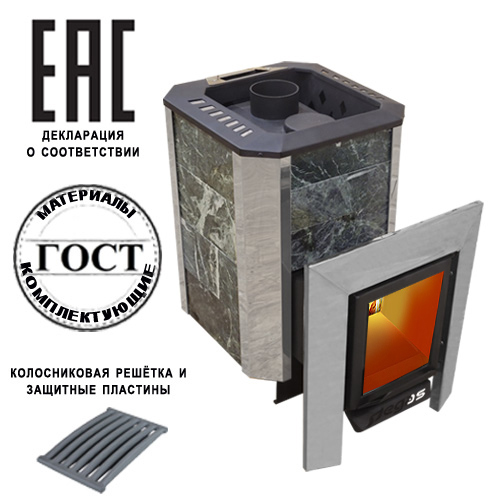 Печь Берёзка Пегас 22 чугун со стеклом в камне змеевик