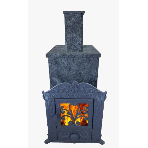 Печь-камин Березка Verona 50 3К-нерж, в каменной облицовке+облицовка дымохода 500 мм