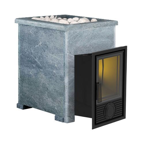 Печь-камин Березка Викинг 15 Д-2 в каменной облицовке