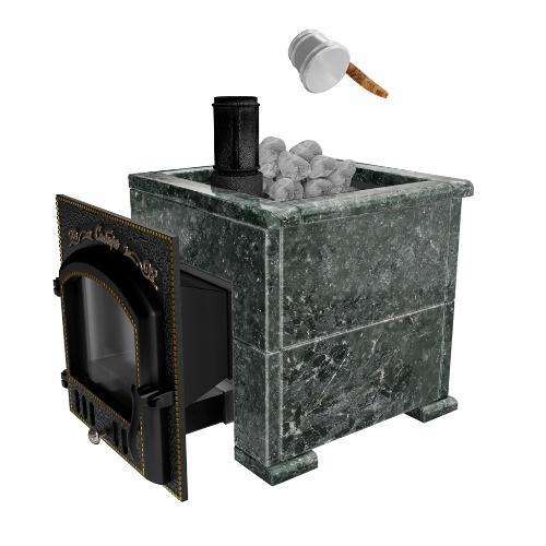 Премиальная банная печь НМК Сибирь-25 (дверка 545х545) в облицовке Оптима пироксенит