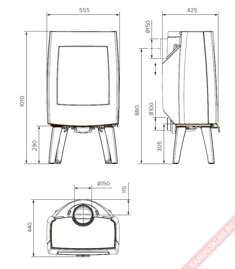 высота: 1010 мм, ширина: 555 мм, глубина: 440 мм.