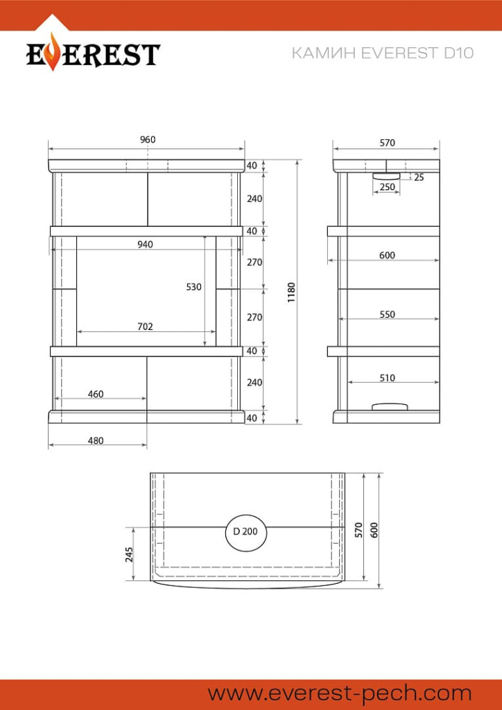 Инструкции, чертежи, документы - Камин Везувий Everest D10 Vyborg Н-1180 Пироксенит Элит