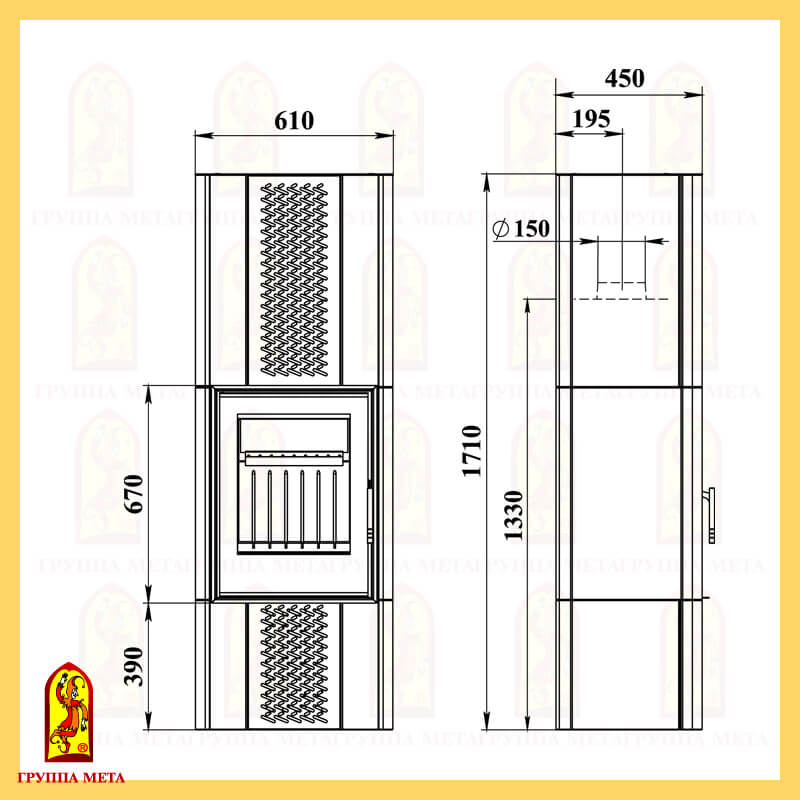 - Диаметр дымохода, мм 150