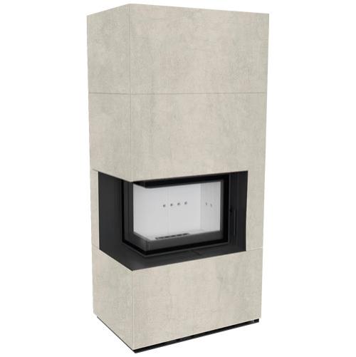 Каминокомплект Kratki Pro Floki в облицовке Naturali Pietra di Savoia Perla Bocciardata, угловое стекло слева (светлая футеровка)