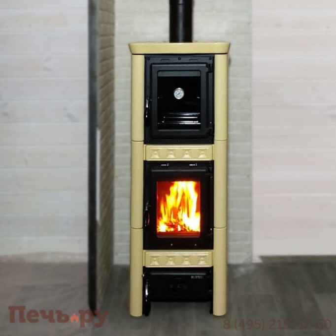 Облицовка из керамики Майолика, стальной корпус, футеровка из чугуна, система очистки стекла, система дополнительного дожига, регулировка подачи воздуха на горение.