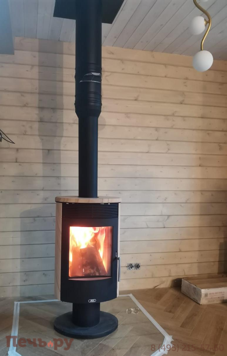 Печь камин ABX Tartu 5 поворотный (черная сталь, бразильский песчаник с верхней плитой)