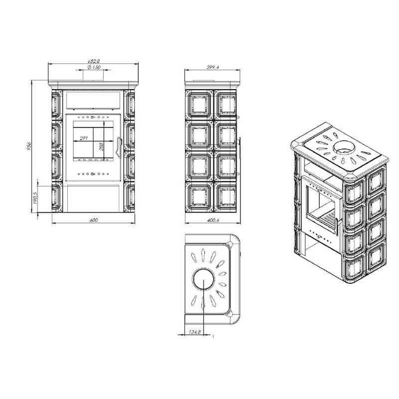 - Материал печи Сталь , Кафель\Керамика\Изразец , Изразец