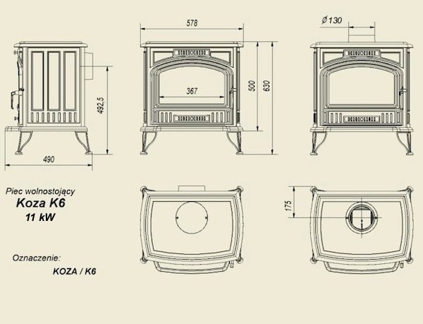 Инструкции, чертежи, документы - Печь камин Kratki Koza K6 турбина (150 мм)