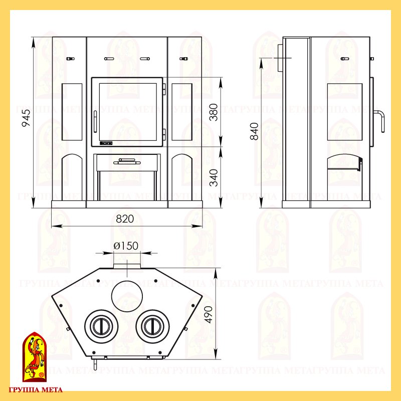 Инструкции, чертежи, документы - Печь-камин Мета Енисей с плитой