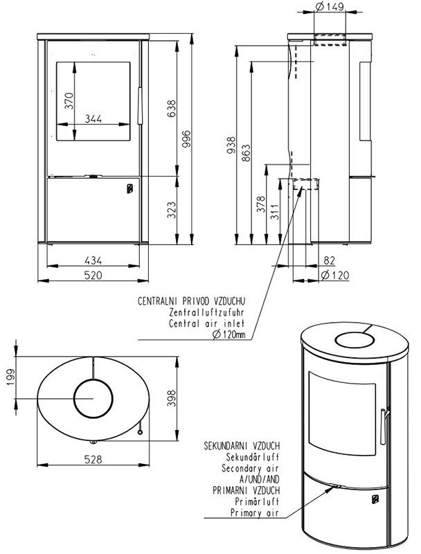 - Диаметр дымохода, мм 150