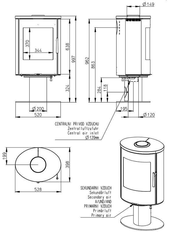 - Диаметр дымохода, мм 150