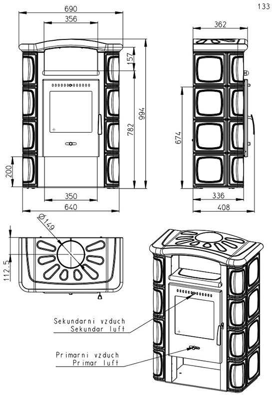 - Диаметр дымохода, мм 150