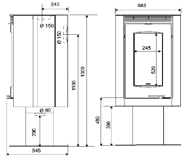 - Диаметр дымохода, мм 150