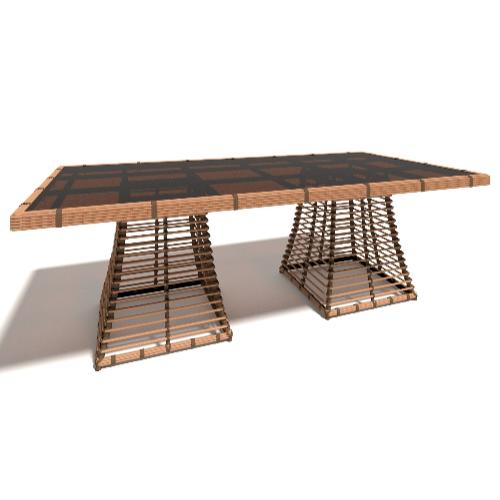 - Обеденные столы из ротанга со стеклом