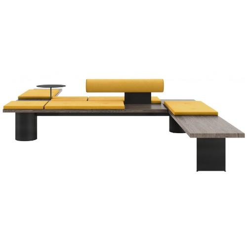 Galleria - это законченный дизайн с универсальностью, позволяющий создать широкий спектр различных решений: линейная скамья, двойное угловое сиденье, островок, идеально подходящий для ожидания, расслабления и веселья. И все это создано на основе простой стальной планки, на которую можно свободно прикреплять различные простые геометрические элементы из дерева, кожи, ткани, мрамора и металла, окрашенные в различные цвета. Каждую композицию можно использовать отдельно или в группах, предлагая бесконечные возможности использования, которые прекрасно сочетаются с любым пространством или стилем.