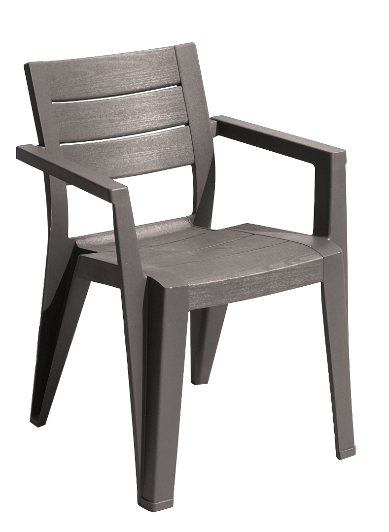 Современный дизайн подходит ко многим видам столов и стулья можно вставлять друг в друга - это главные преимущества удобных стульев Julie. Легкая чистка, отсутствие необходимости в уходе и защита от неблагоприятных погодных условий.