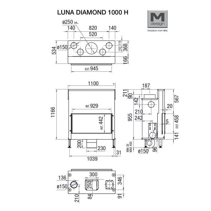 Инструкции, чертежи, документы - Каминная топка M-design Luna 1000 Н Diamond (Луна 1000 Н Даймонд)