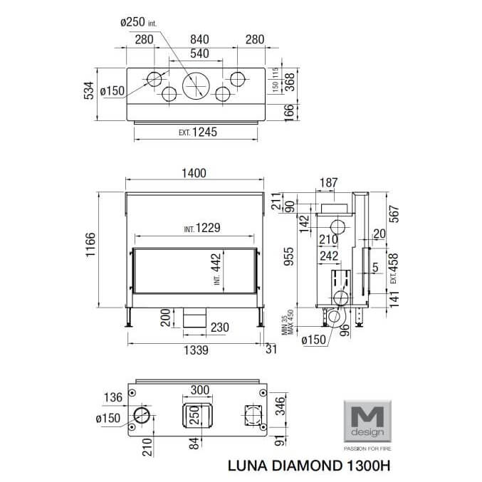 Инструкции, чертежи, документы - Каминная топка M-design Luna 1300 Н Diamond (Луна 1300 Н Даймонд)