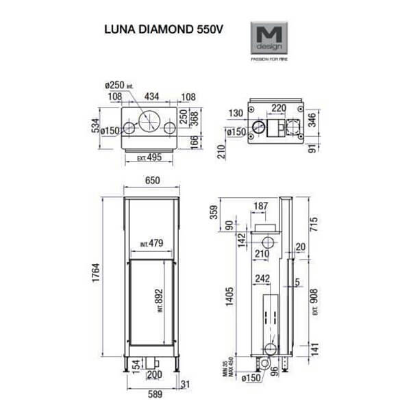 Инструкции, чертежи, документы - Каминная топка M-design Luna 550 V Diamond (Луна 550 V Даймонд)