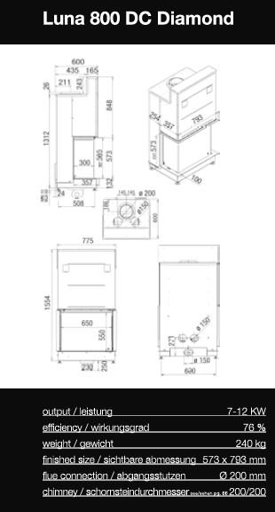 Инструкции, чертежи, документы - Каминная топка M-design Luna 800 DC Diamond (Луна 800 DC Даймонд)